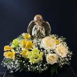 Price: $125.00In Flight Sympathy Floral Arrangement with Keepsake Wall Cross